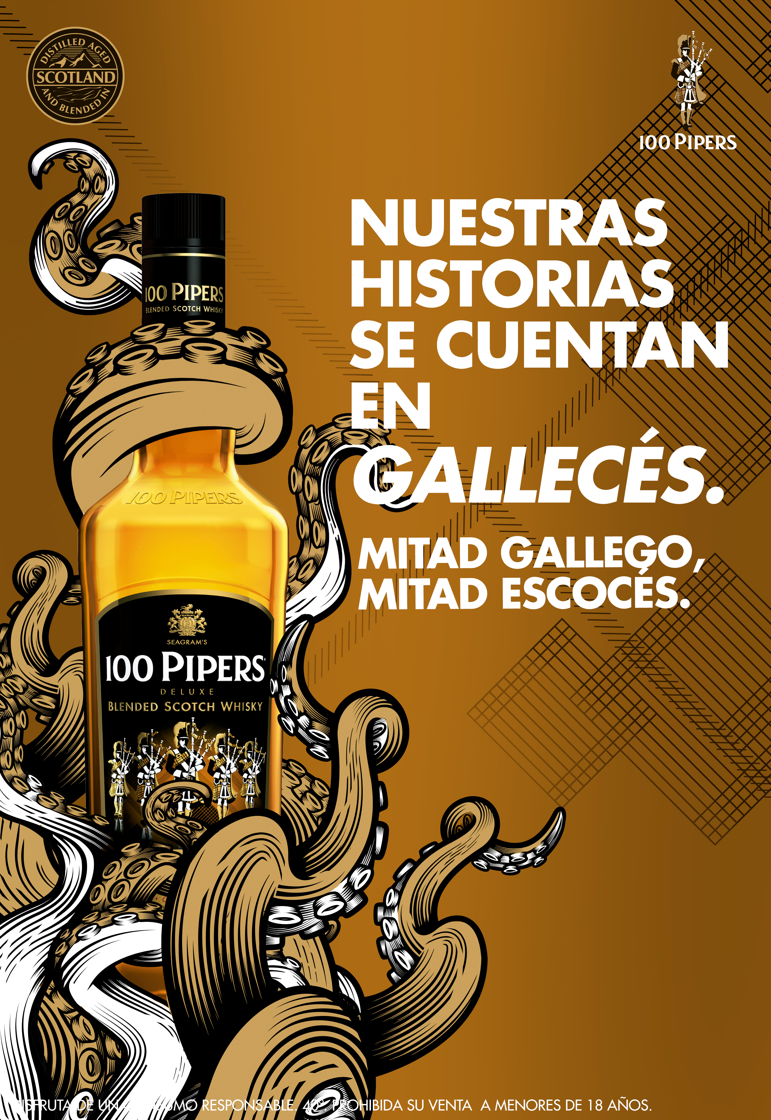 100 Pipers es una marca de Whisky Escocés con una gran tradición de consumo en Galicia y Canarias, tanto, que en estas zonas ya se considera como de allí.