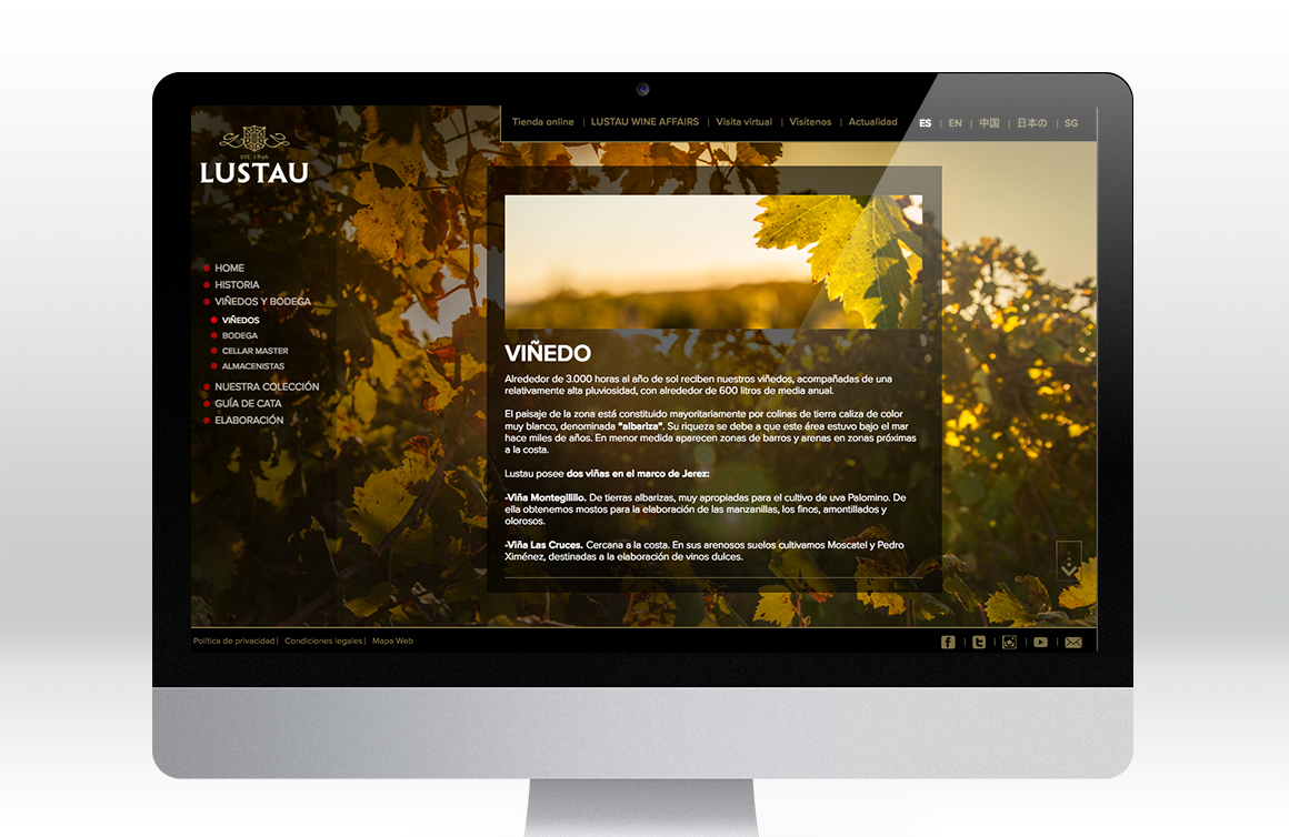 Creación e una nueva web para las Bodegas Lustau. Para su creación se llevó a cabo un shutting en las bodegas centenarias de la marca para crear una imagen cuidada que represente la calidad y tradición del producto..
